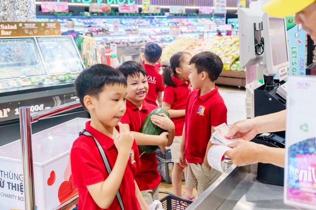 At the supermarket, the students embraced the role of “little consumers”, with teachers helping them to create shopping lists that fit within a designated budget. Each student selected their own products, experienced the shopping process, and made payments, just like real consumers.