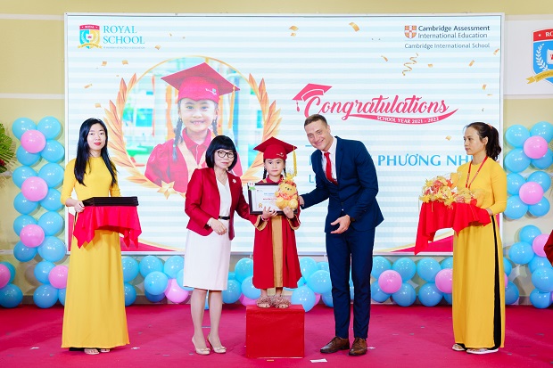 Phụ huynh Thái Thị Yến Nhi (bé Nguyễn Viết Công Vỹ lớp K2) cũng có những lời tâm sự: “Sự hạnh phúc của các bậc phụ huynh là được lắng nghe những câu chuyện sẻ chia sau mỗi ngày đến trường của con: Hôm nay con học gì? Hôm nay con vui như thế nào?.... Tôi chân thành cảm ơn bao tâm huyêt, sự dạy bảo của các thầy cô giáo trong suốt thời gian qua. Tại Royal School tôi cảm nhận được một tình yêu vô cùng đặc biệt dành cho con, đó là “con biết yêu thương và con được yêu thương”. Tôi tin chắc đây sẽ là một hành trang vô cùng quan trọng để con có thể mãi thành công trên con đường phía trước.”