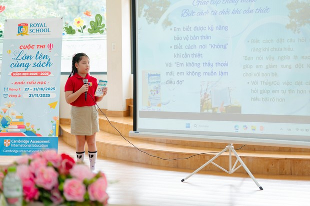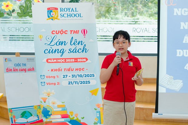 Nhằm khuyến khích học sinh nuôi dưỡng thói quen đọc sách, Royal School tổ chức cuộc thi “Lớn lên cùng sách”, năm học 2025-2026 dành cho toàn thể học sinh các khối. Đây là sân chơi bổ ích giúp các em có cơ hội khám phá thế giới tri thức qua từng trang sách, đồng thời thể hiện năng khiếu Mỹ thuật qua việc thiết kế sản phẩm bookmark, bìa sách và khả năng cảm nhận văn học, kỹ năng hùng biện trước đám đông.