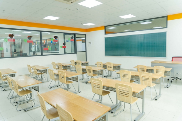 Phòng học được bố trí đảm bảo tiêu chuẩn ánh sáng với hệ thống đèn chiếu an toàn, chất lượng.