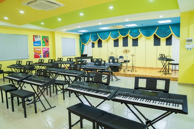 Phòng Âm nhạc thoả đam mê với các loại nhạc cụ như guitar, piano, trống, đàn nhị,…