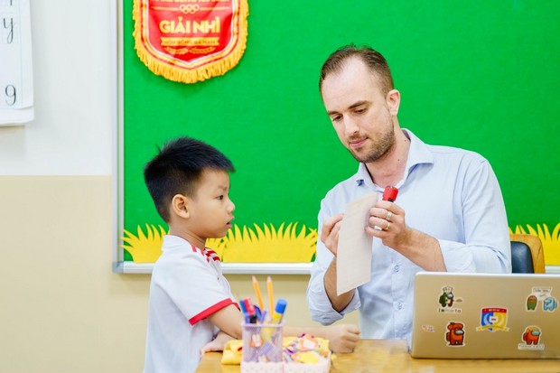 In class, teachers often organize group interaction activities, discussions, and language games to stimulate student participation. Students are encouraged to develop English communication skills through real-life situations and practical exercises, helping them confidently use the language naturally.