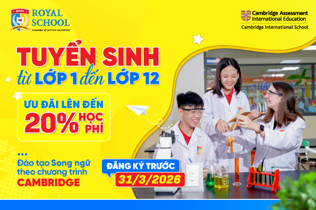 Chú trọng vào sự phát triển của học sinh cũng như mong muốn sẽ có thêm nhiều thế hệ học sinh được tiếp cận với môi trường giáo dục quốc tế chất lượng, Royal School thông tin tuyển sinh trong năm học 2026-2027. Theo đó, học sinh từ lớp 1 đến lớp 12 khi đăng ký theo học trước 31/3/2026 tại cơ sở Phú Mỹ Hưng sẽ nhận ưu đãi học phí 10% trong năm 2026-2027, còn tại cơ sở Phú Lâm sẽ nhận mức ưu đãi học phí 20% trong suốt thời gian học.
